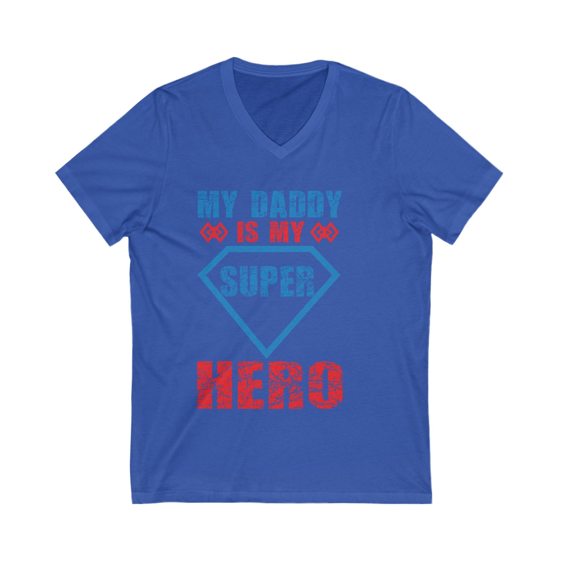 My Daddy Is My Superhero Unisex Short Sleeve V-neck Tshirt